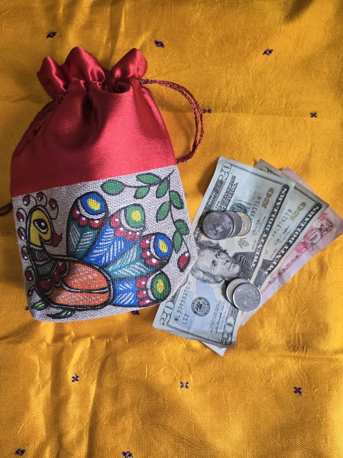 Traditional batua pouch featuring Mithila artwork.