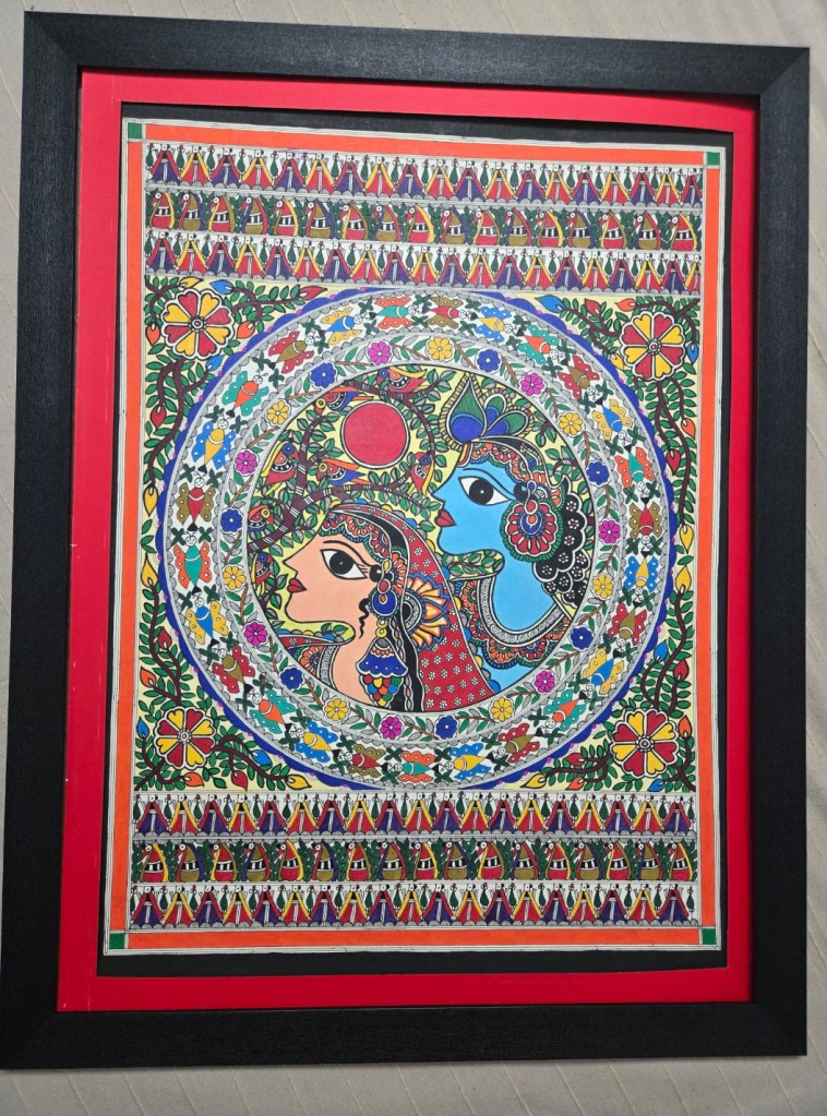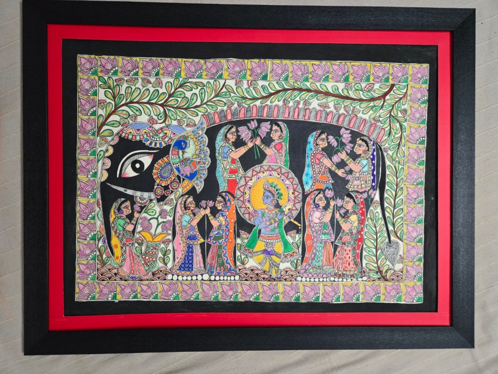 Authentic Mithila painting beautifully framed.